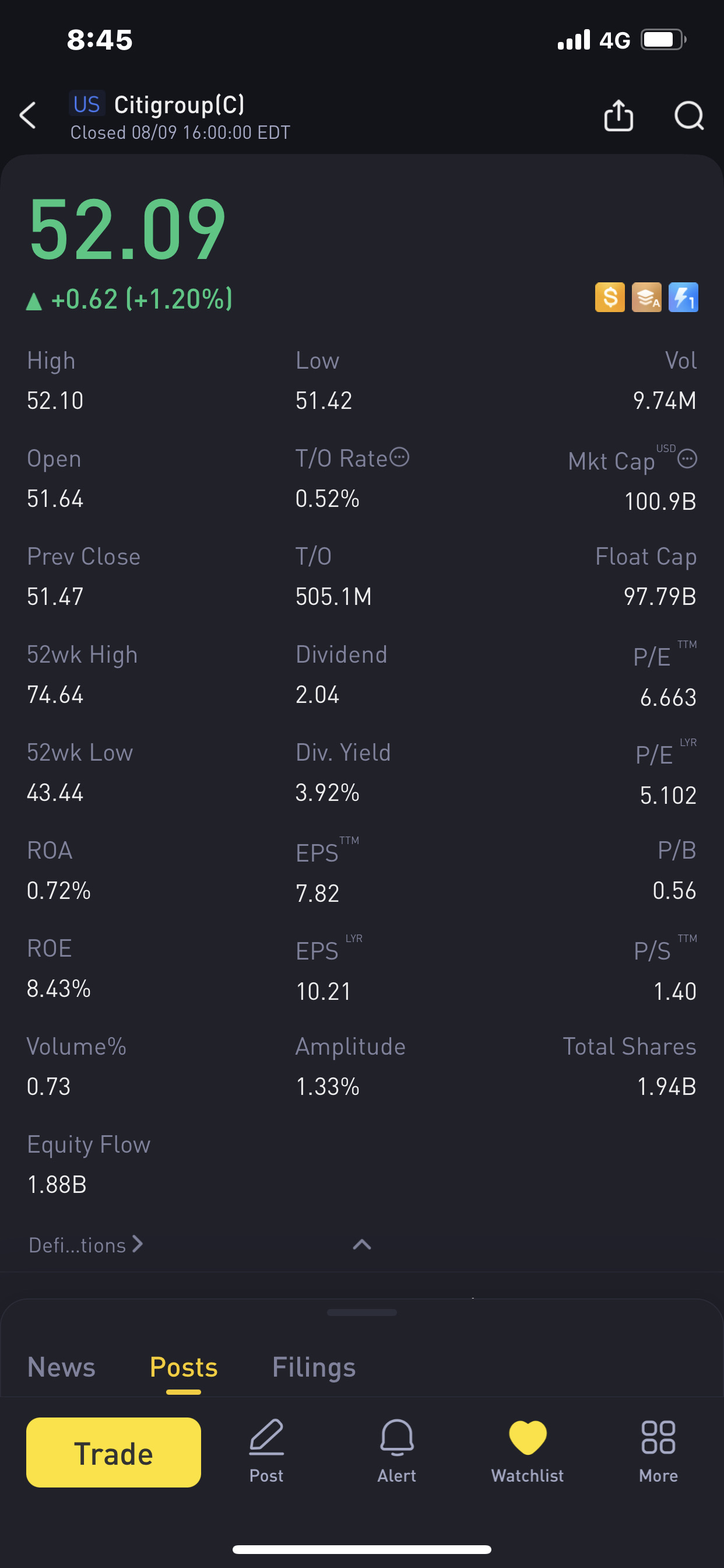 You will have around 10% buffer on the strike price in case Citibank retraces back and also 1% ofpremium so in the event you get the stock . At $48 and it falls abit more and u can still sell monthly call at 48 to sell off the shares . earning another 1%