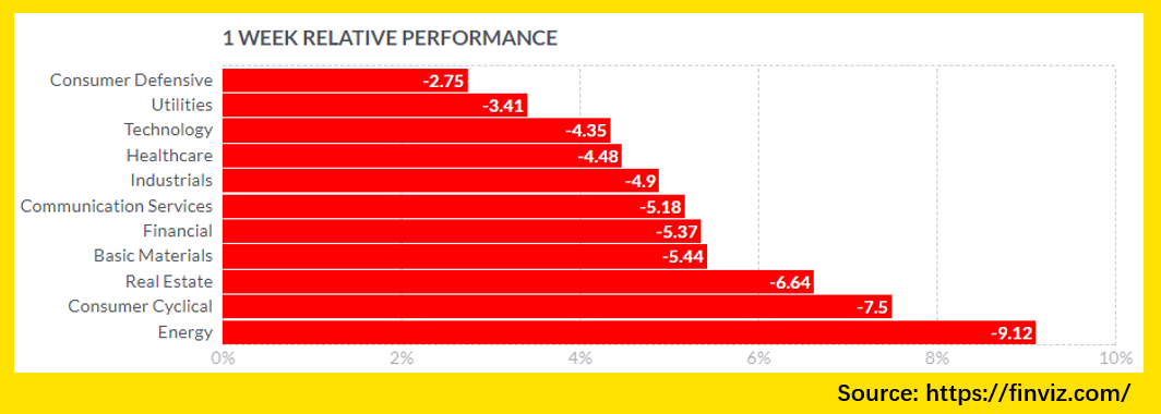 The 11 sectors of the S&P 500 were wiped out. The energy sector closed down 9.12% amid global recession fears, the Consumer Cyclical sector fell about7.5%, the Real Estate fell by more than 6.64%, and the Basic Material, Financial, Communication Services, Industrials, Healthcare, Technology fell over 4%~5%, the Consumer Defensive closed down 2.75% with the smallest decline.