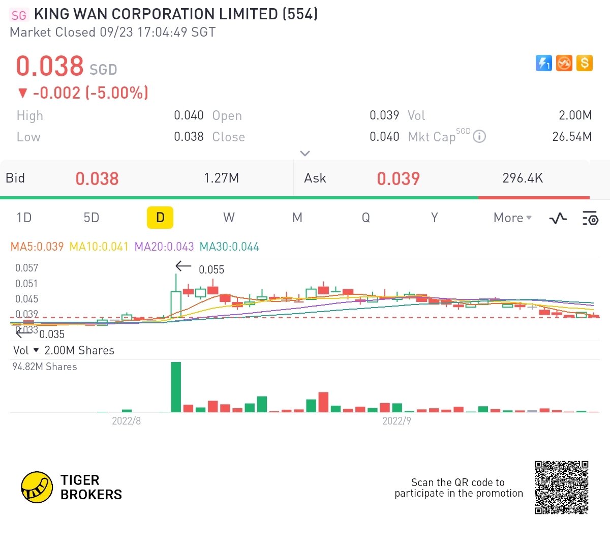 $KING WAN CORPORATION LIMITED(554.SI)$ok