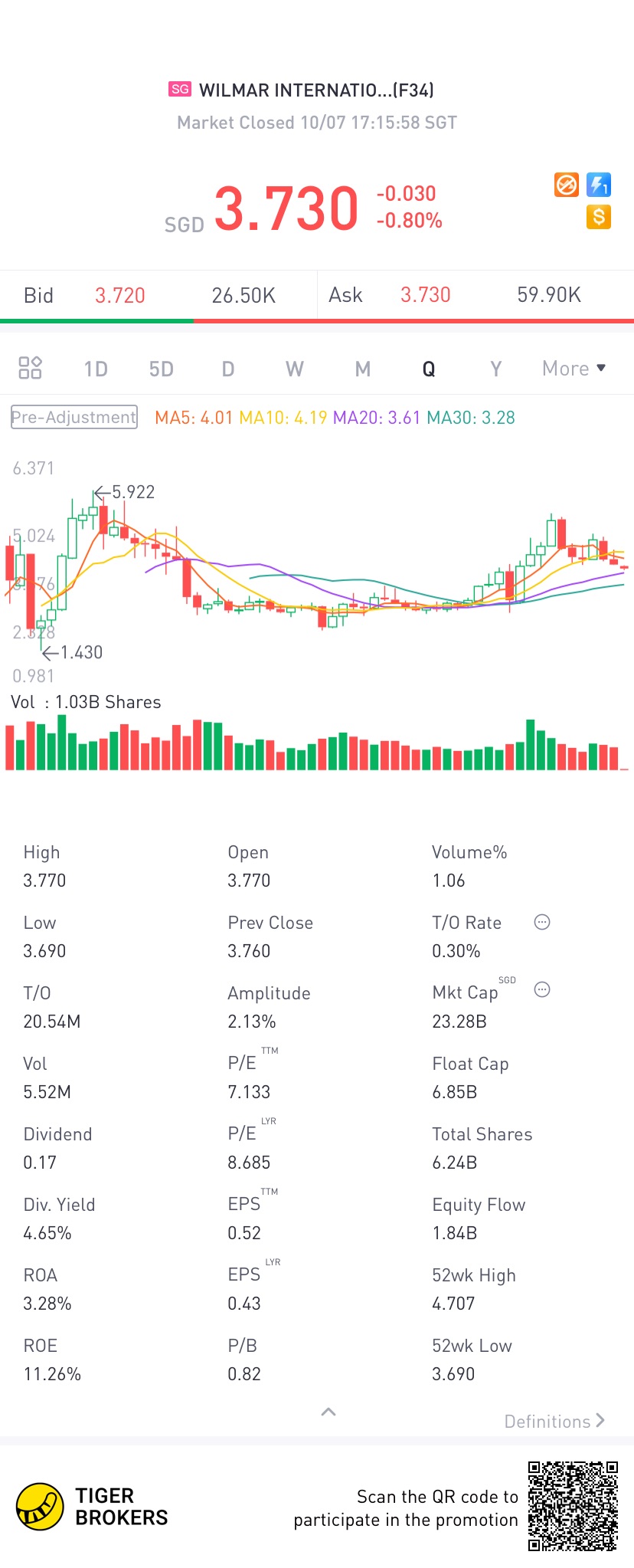 $WILMAR INTERNATIONAL LIMITED(F34.SI)$D