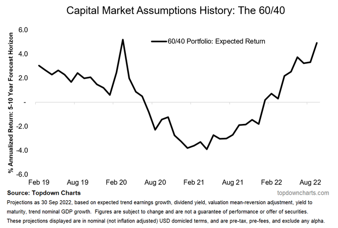 No wonder the 60/40 portfolio got messed up this year, it was trading at record expensive valuations in Dec 2021!Interesting follow-on chart, this time looking at the expected return outputs from our capital market assumptions...