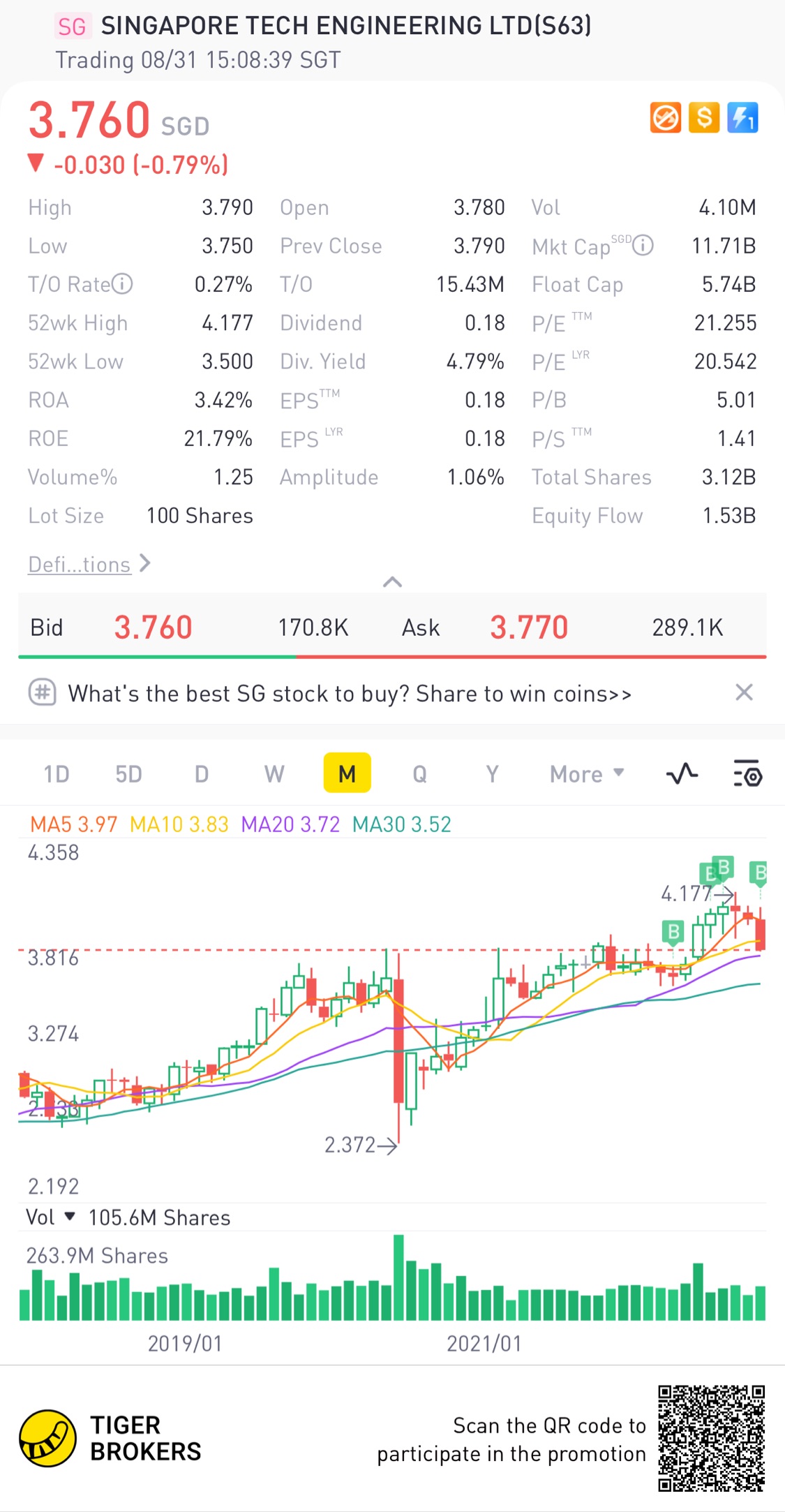 $SINGAPORE TECH ENGINEERING LTD(S63.SI)$Gogogo