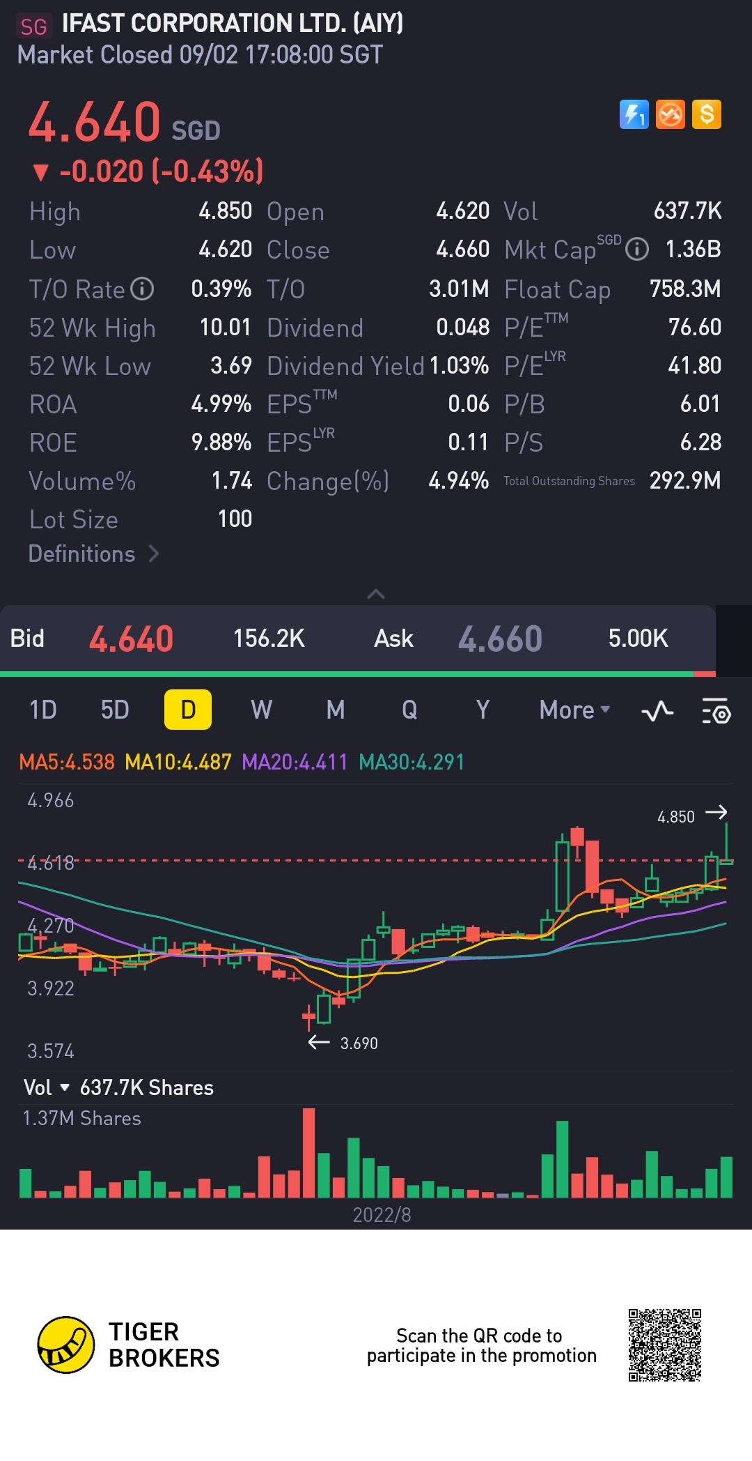 $IFAST CORPORATION LTD.(AIY.SI)$ woah