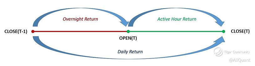 I know this might sound incredulous but the bulk of your returns actually come from moves that happen overnight. To be clear about what I meant, let’s first talk about daily returns. Daily returns are measured from the market close to close. So if the price of Stock A close at 100 today and then 110 the following day, the return for that day is 10%. However, this daily return can be further split into 2 parts. The first part is the return from the prior day’s close to today’s open. The second is the return from today’s open to today’s close. The first part is your overnight returns during which markets are closed and the second is the return during regular active market hours.