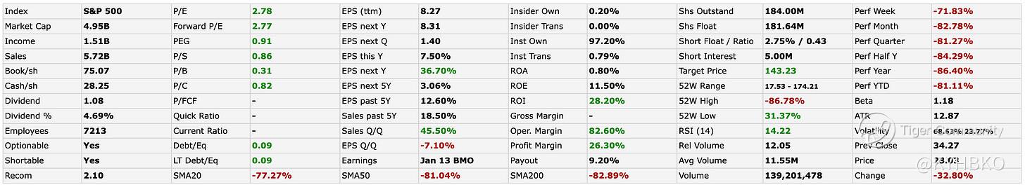 The P/E looks attractive at 3.8 with a growing dividend payout for the last 10 years. On top of this, its EPS grew steadily from $3.10 in 2013 to $8.25 in 2022, a heavy growth.