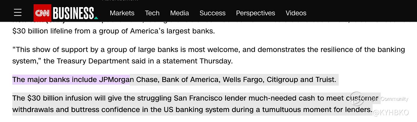 In the article above, a consortium of banks came in to “rescue” FRC. This is a rescue package from the banking sector, to save one of their own and hopefully contain the contagion of fear that is disrupting the banking sector.
