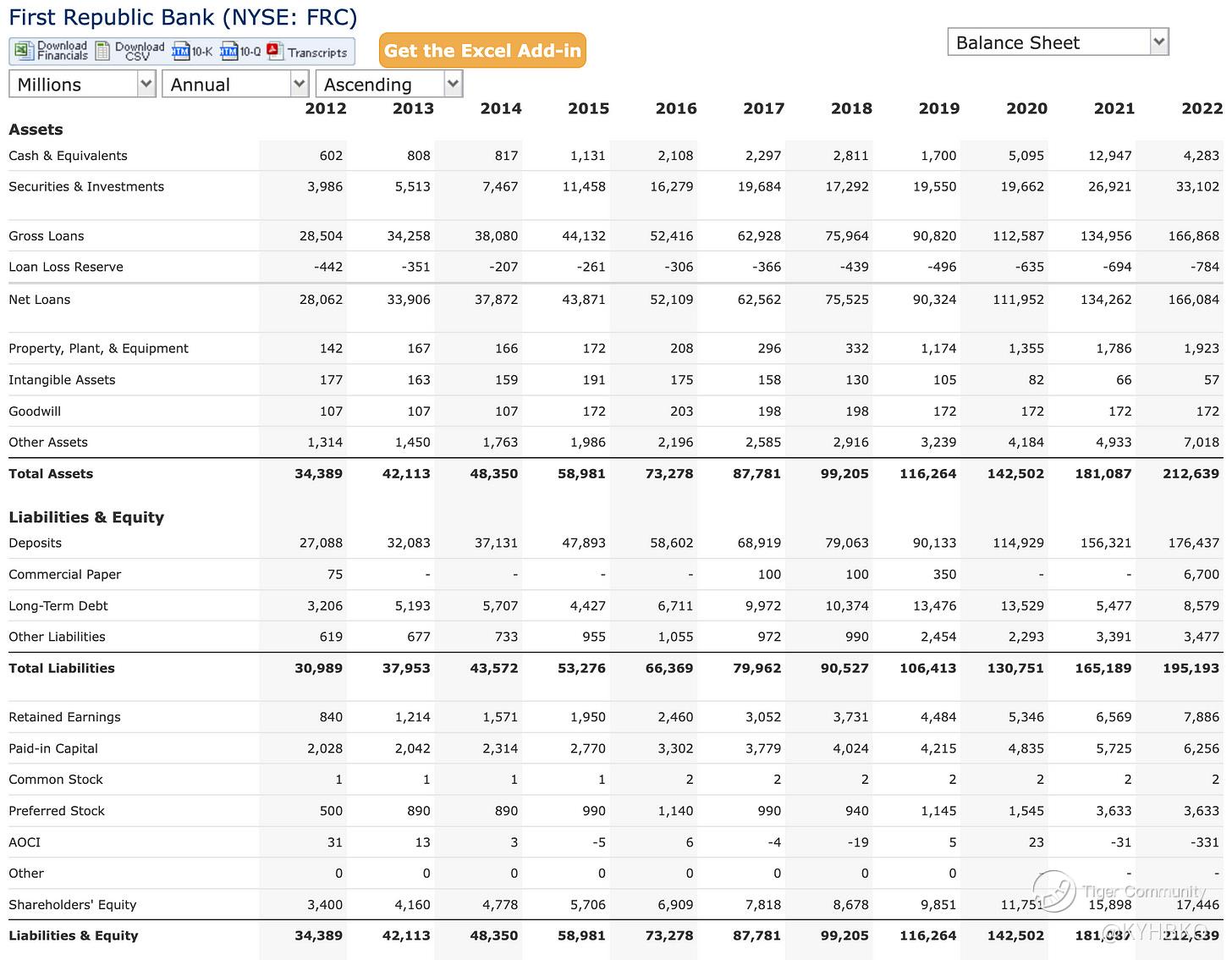 Total assets reached $212B in 2022 and total liabilities reached $195B in 2022. This implies a net asset of $17B.
