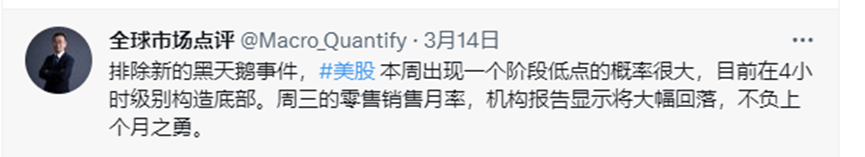 1. Before the announcement of PPI and monthly retail sales rate on March 14th, as shown in the following figure, based on the multi-dimensional technical evaluation of time and space, I posted the top-bottom judgment point of US stocks on Twitter. Looking back, the four major indexes of US stocks have already appeared at the bottom of the stage, especially the rising trend of Nasdaq is more clear.