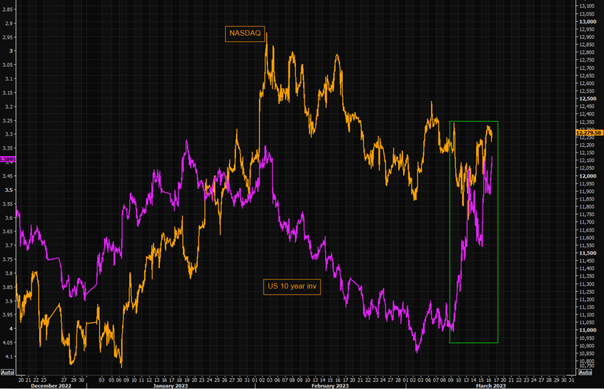 The gap between the US 10 years (inversion) and NASDAQ has almost disappeared.