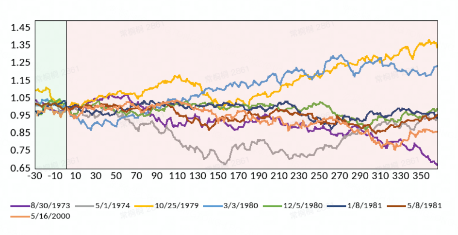 The following chart shows the 16 times the Fed has raised interest rates for the last time since 1971. In the year following these events, the US economy has gone into recession 8 times and not gone into recession 8 times. Therefore, we will first look at the historical performance analysis of these two situations.
