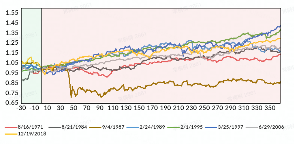 If the US does not go into recession within a year after the last rate hike by the Fed, $S&P 500(.SPX)$’s performance during the following year is mostly a steady upward trend, with the exception of the famous "Black Monday" on October 19, 1987, which caused the S&P 500 index to plummet more than 20% that day.