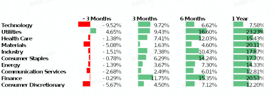 Due to data limitations, our statistics on the performance of US stock industry sectors and other assets began in this century. Before and after the last rate hike by the Fed, the financial and utility sectors of US stocks performed the best.