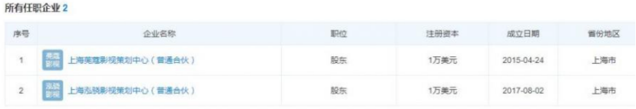 公開資料顯示,目前竇驍(DOU SHAWN)名下關聯上海蔸蔻影視策劃中心(普通合夥)、上海泓驍影視策劃中心(普通合夥)2家企業,其中後者已於2021年註銷。