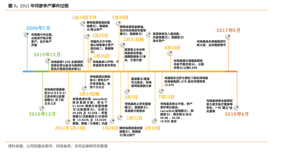 何氏家族成員衆多關係複雜,曾在2010-2011年經歷股權紛爭。賭王何鴻燊共有四房太太17位子女,其二夫人的子女何超瓊、何超鳳、何超蕸、何猷龍,三夫人陳婉珍以及四夫人樑安琪都持有澳博控股的股份,因此公司股權較為分散。