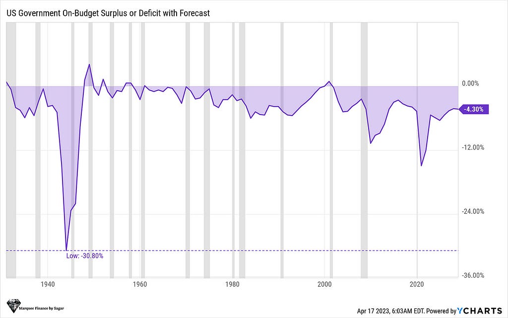 This transpired in the 40s but remember that the government ran a fiscal surplus (taxes were as high as 92% for the wealthy back then- check the first image of the last section).