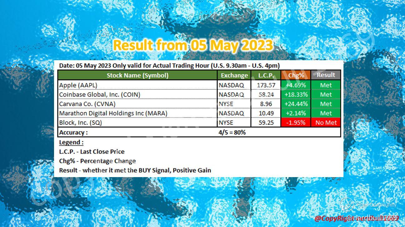 This is how the result from A.I. model have performed from 05 May 2023.