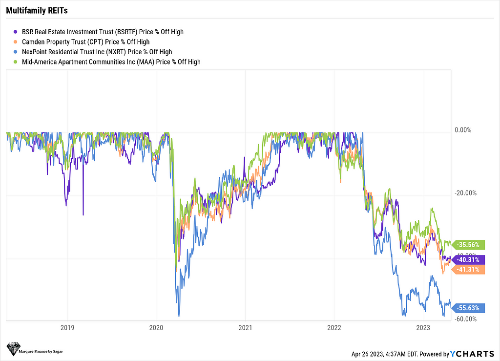 Nonetheless, some of the largest multifamily REITs have already undergone a 35–50% drawdown.
