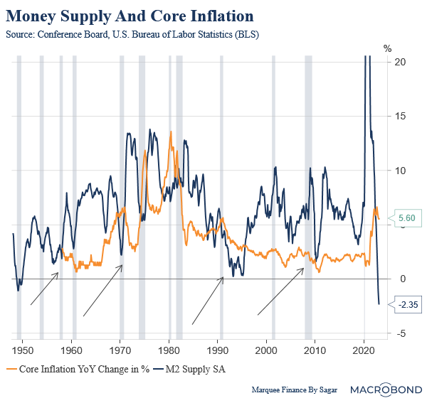 Though market participants believe that the Core-Ex Housing remains sticky, however, the data from the past indicates that a fall in money supply (M2) is succeeded by a fall in inflation.
