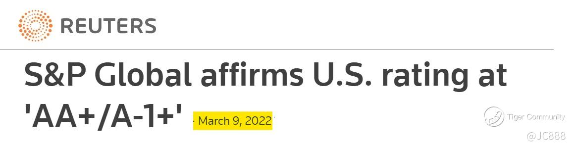 • As of 9 Mar 2022, the US government never did get back its Triple AAA credit rating.
