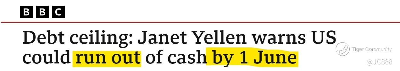 US Treasury dept is expected to run out of money by 01 Jun 2023 and will not be able to meet its financial obligations after that.