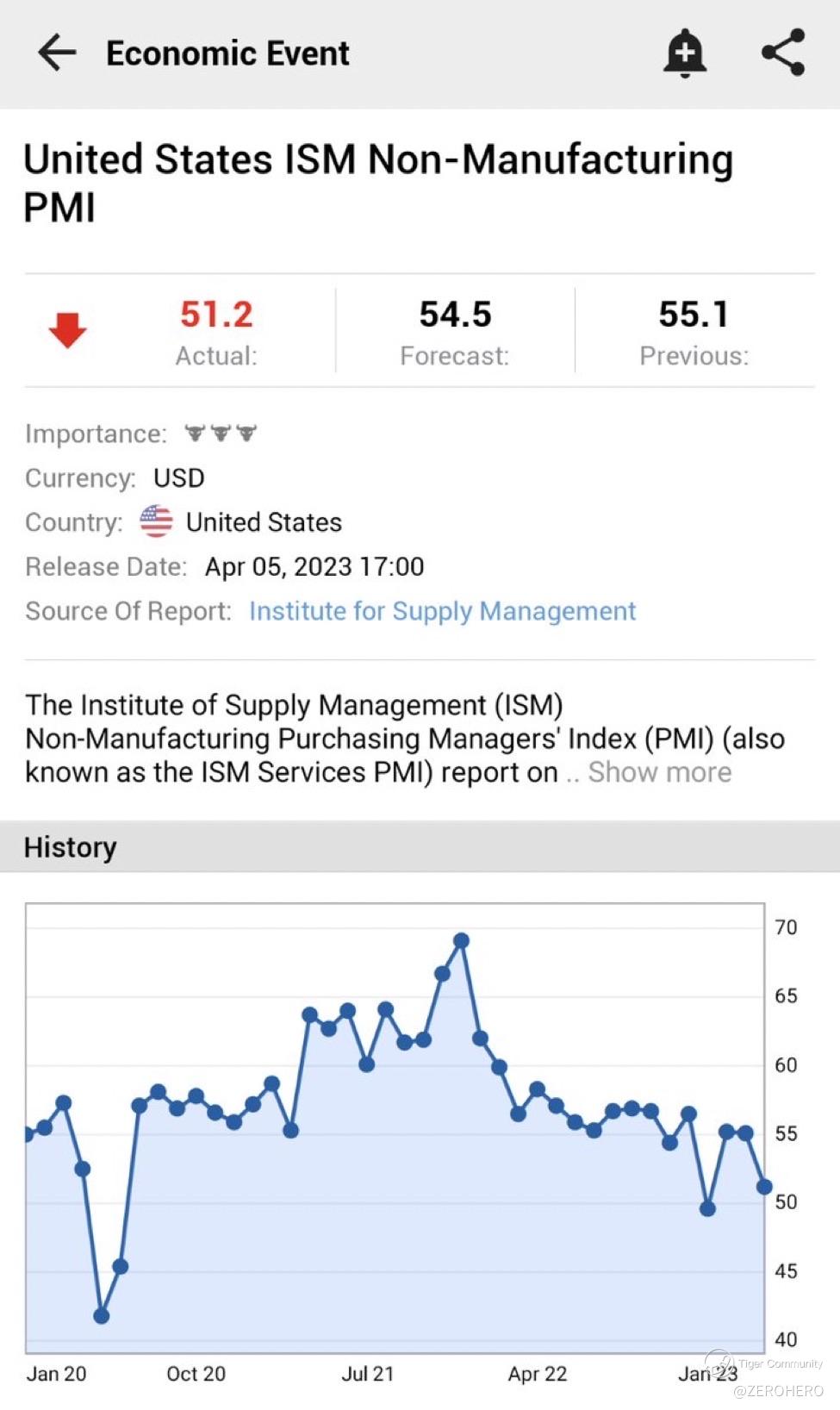 We have a lower PMI number on Monday. Final data on ISM non-manufacturing activity for March came in lower than expected, at 51.2 versus forecasts for 54.5.