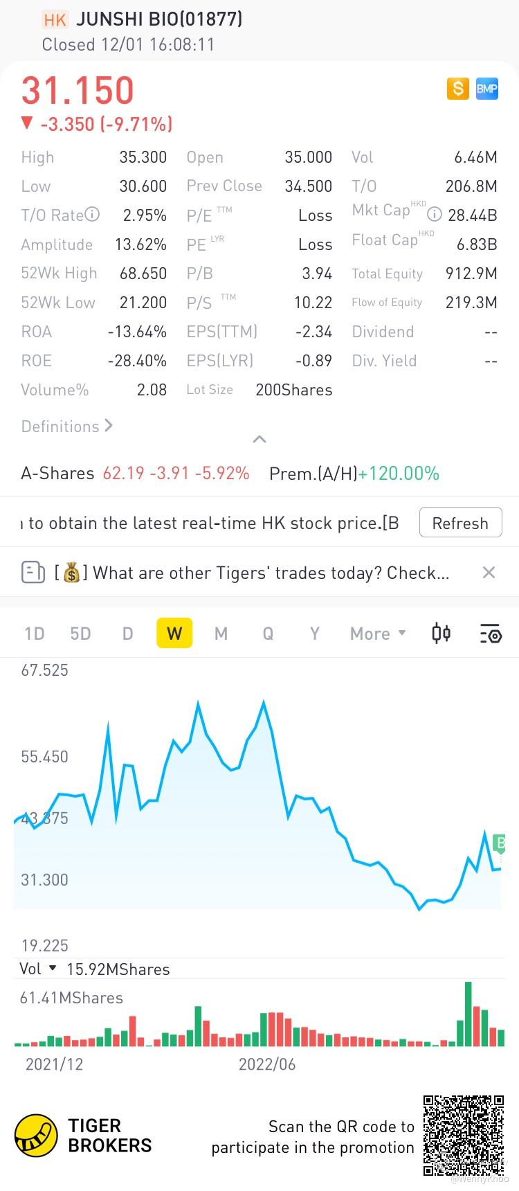 $JUNSHI BIO(01877)$ Potential to 10%!!! Up up up