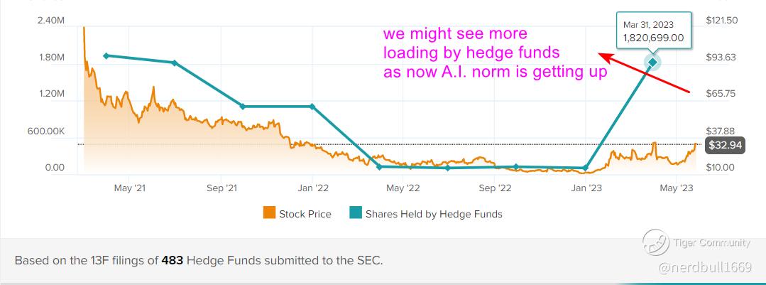 We are seeing hedge funds increased their holdings by 1.7M in the last quarter. This could go up as we can see that more and more funds are looking for potential good A.I. stocks to invest into.