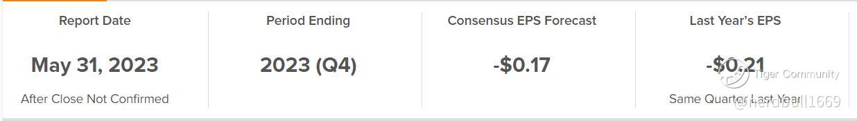 C3.ai (AI) will be releasing their earnings for period ending 2023 (Q4) on 31 May after market close, market forecast EPS is still in the negative but it will be an improvement from 2022 same period.