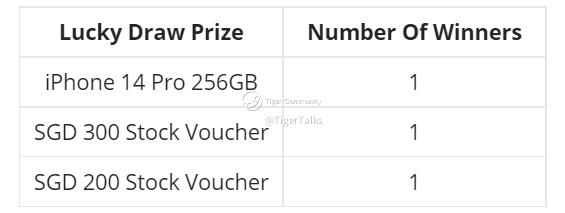 The highest Tiger subscriber will win the latest Apple iPhone 14 Pro. There are also lucky draw prizes too for Tiger Friends.