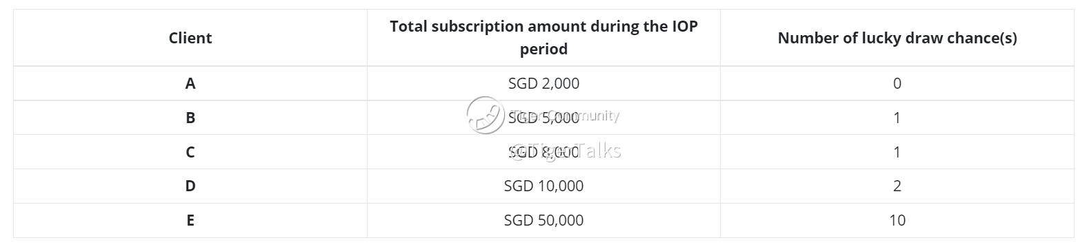 Every SGD 5,000 subscription amount will get one (1) lucky draw chance.