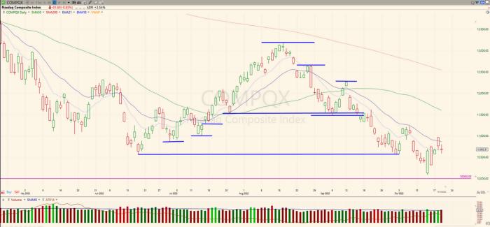Nasdaq (-0.85%) gapped down and closed the day forming a Doji candle. This might suggest indecision… towards the bearish side. After another distribution day, we can only observe the price action and keep looking for clues: above Tuesday’s high or yesterday’s low. Watching the marked levels as well. $NASDAQ(.IXIC)$