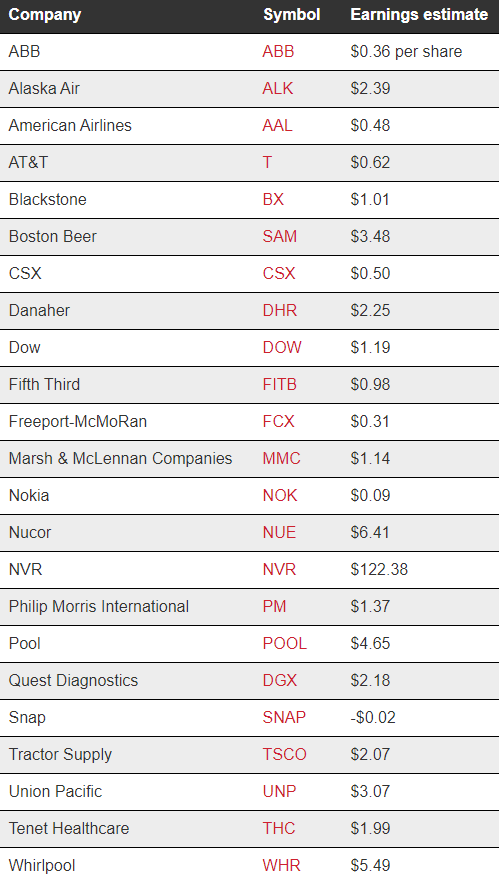 Tesla reported $1.05 in adjusted EPS, ahead of expectations of 99 cents, on revenues of $21.45 billion, lighter than the $21.96 billion expected. IBM surpasses quarterly projections and lifts its full-year revenue forecast. Procter & Gamble’s earnings beat as higher pricing offsets the drop in volume. Globally critical chip firm ASML jumps 6% after earnings. $Tesla Motors(TSLA)$ $IBM(IBM)$ $ASML Holding NV(ASML)$