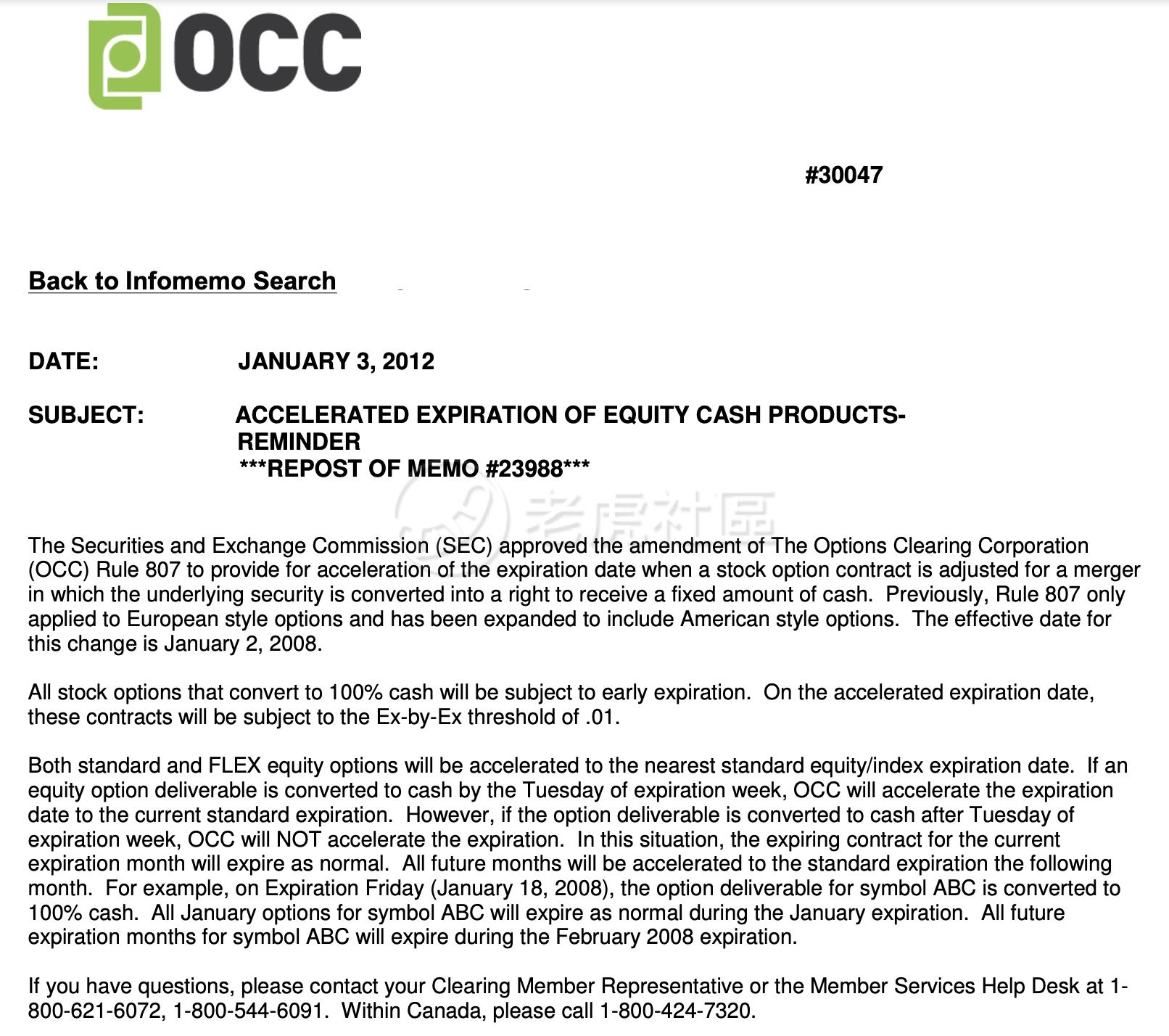 - If an equity option deliverable is converted to cash by the Tuesday of expiration week, OCC will accelerate the expiration date to the current standard expiration.