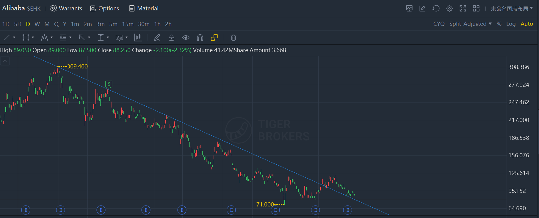 Alibaba's current HK share price is 88 HKD, not far from the low of 71 HKD.