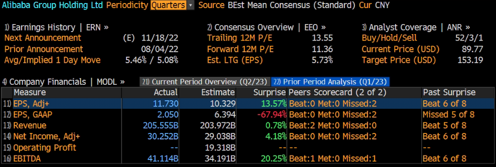 Revenue of 205.556 billion RMB, again exceeding Bloomberg analysts' consensus estimates.