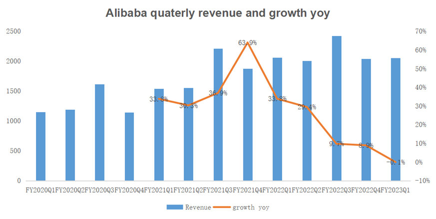 $Alibaba(BABA)$ e-commerce business saw a decline due to dysfunctional logistics. However, revenue in the second quarter declined by only 0.1% year-over-year. (better than expectations)