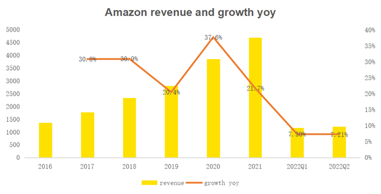 In 2022, Amazon is not having a good time either, with revenue growth of only 7.2% in the second quarter of this year.