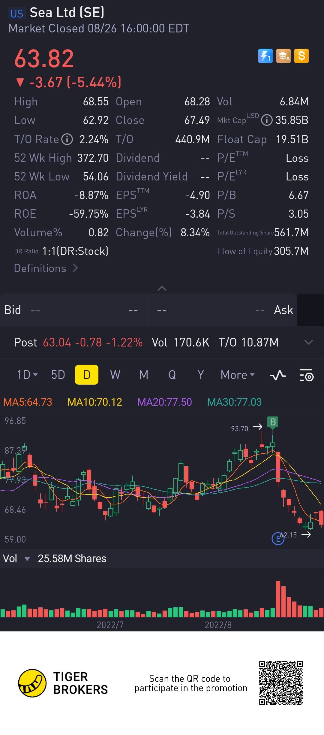 $Sea Ltd(SE)$ oversold after earnings. Hoping that this counter is prime for a swift rebound