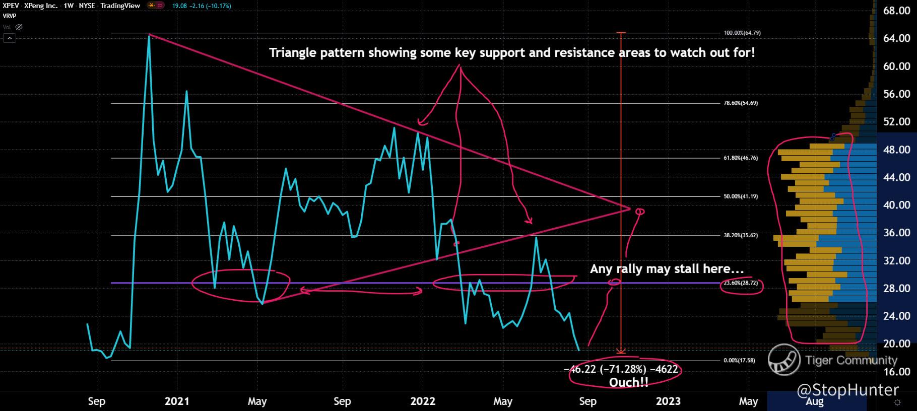 Conclusion - from the charts its not looking great and maybe more pain to come!? I am unaware of any fundamental reasons why XPeng should show a dramatic turn about in stock price. Maybe its 2 new car models its recently highlighted may alleviate shorter term issues? Lot of local competition as well from $NIO Inc.(NIO)$and my favourite $BYD Co., Ltd.(BYDDY)$+ others also not helping.