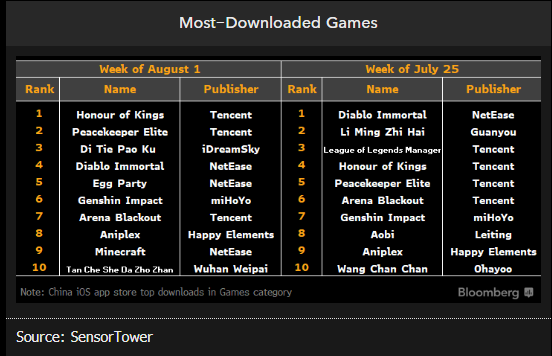 According to the Bloomberg,Tencent's sequential sales were flat with mixed performances by its major games. Honour of Kings sales rose 2% while Peacekeeper Elite fell 4%. A 2.6x surge for CrossFire was offset by League of Legends E-Sports manager's 51% drop. Tencent's sequential downloads fell 15% dragged by declines for Arena Blackout and League of Legends' E-Sports manager. Downloads of the former fell 20% in its fourth week of operation while the latter sank 82%. Honour of Kings was sequentially 2% lower while Peacekeeper Elite gained 1%.